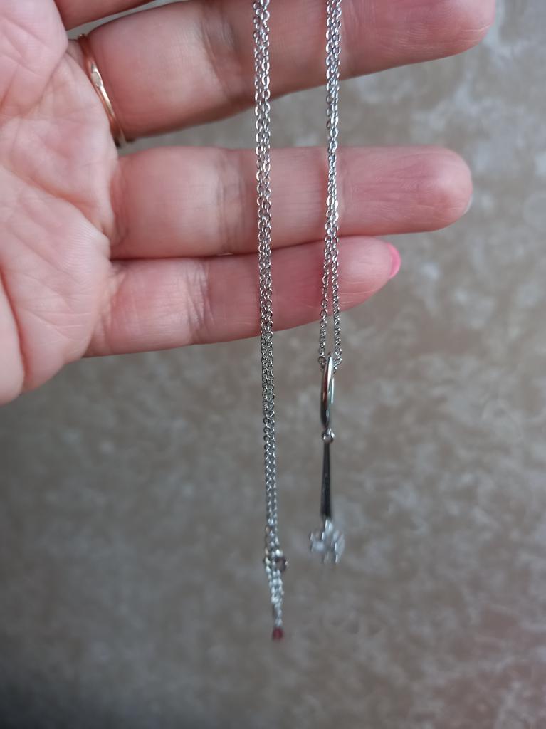 Wunderschönes Set, schlicht, aber sehr elegant. Im Set Halskette und Paar Ohrringe. Gliederkette mit 925er Stempel drauf und lange Ohrringe mit schwarzen Zirkonsteinen. Ich glaube nicht, dass es das echte Silber ist, sieht aber gut aus. Die Halskette kann verlängert werden da es eine Verlängerung hat. Die Lieferung dauerte 2,5 Wochen. Viel Spaß beim Einkaufen!