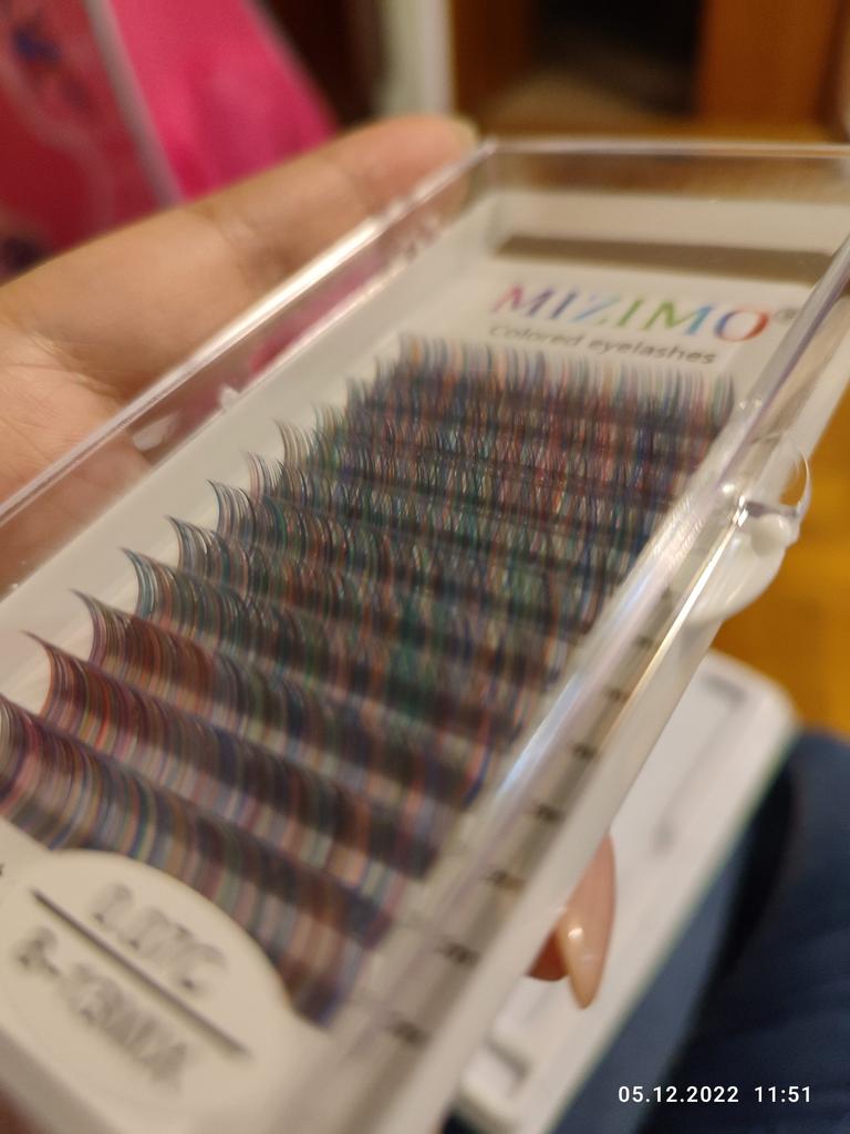 12 Reihen Regenbogenfarbene einzelne gepfropfte falsche Wimpern, Augen-Make-up, dramatische Bühnenwimpern. Natürlich, verlängert.8–15 mm 0,07/0,1 mm