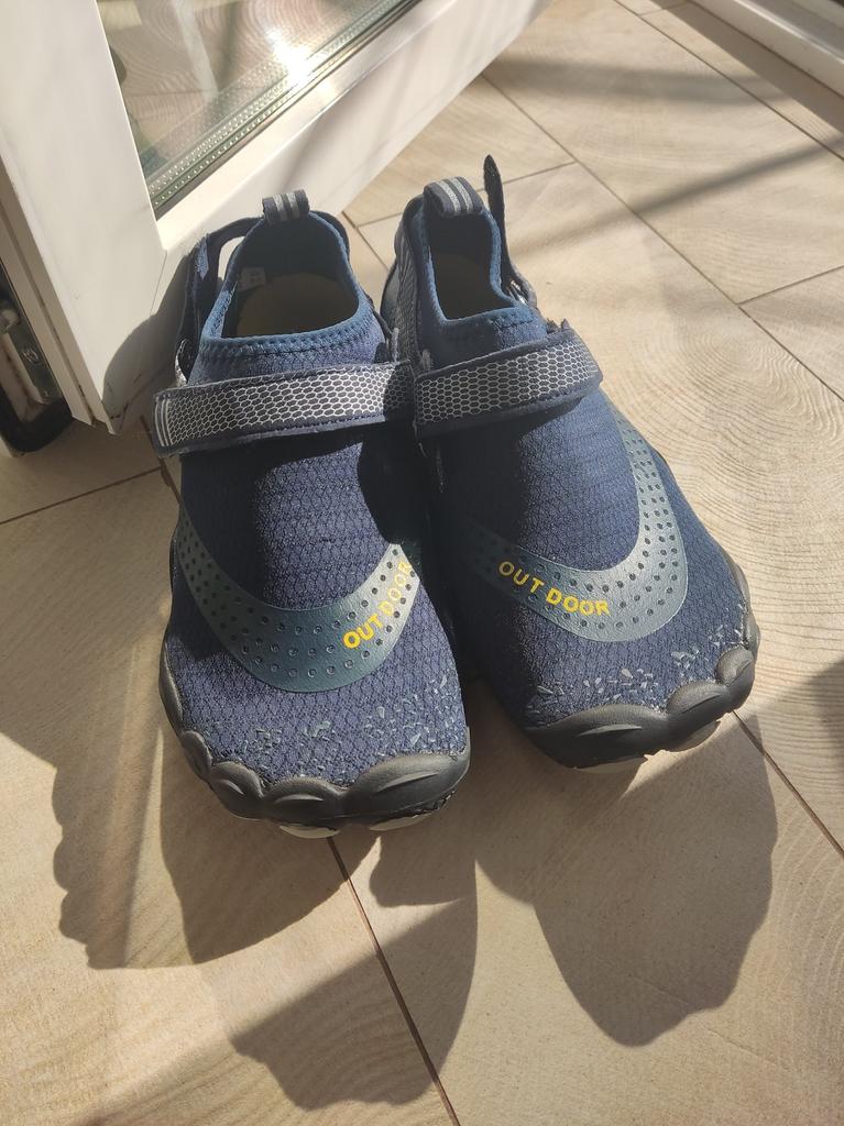 Sie sind alt, sie haben einen stechenden Geruch, der nach ein paar Tagen verfliegt, die Riemen sind zu lang. Die Sohle ist breit.