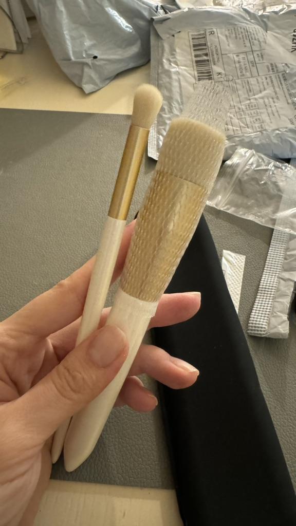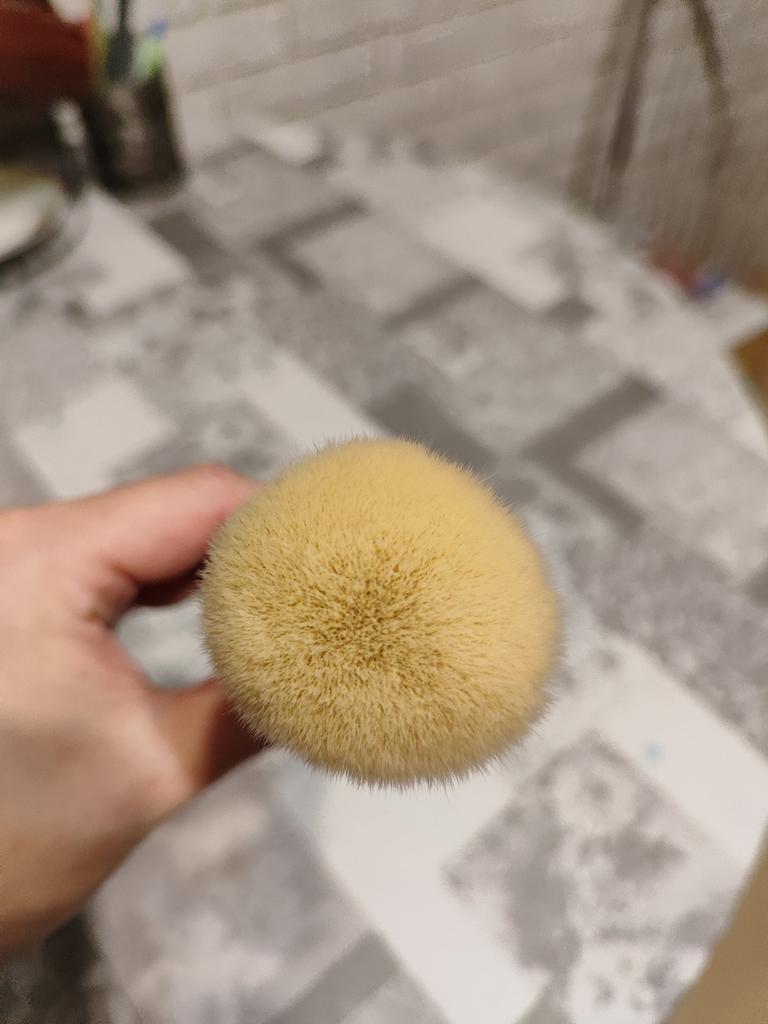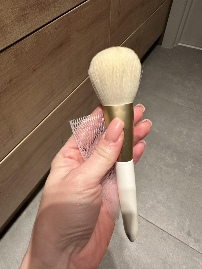 Der Pinsel ist wirklich gut: er liegt angenehm in der Hand, er verblendet schön und sanft, der Verschmutzungsgrad durch die weißen Härchen lässt sich gut feststellen. Gerne gebe ich eine Bewertung ab und empfehle es weiter.