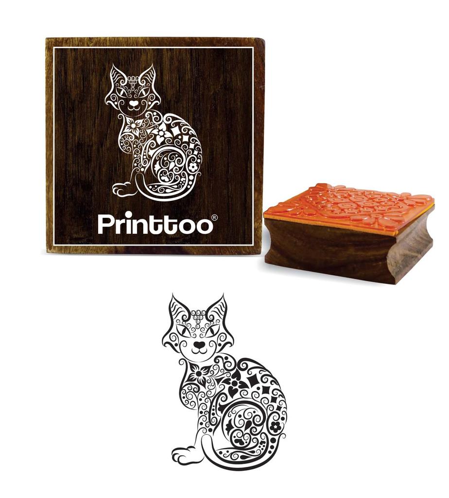 Printtoo Square Wooden Rubber Stamp Scrap-booking Cat Pattern Craft Textile Stamps-2 x 2