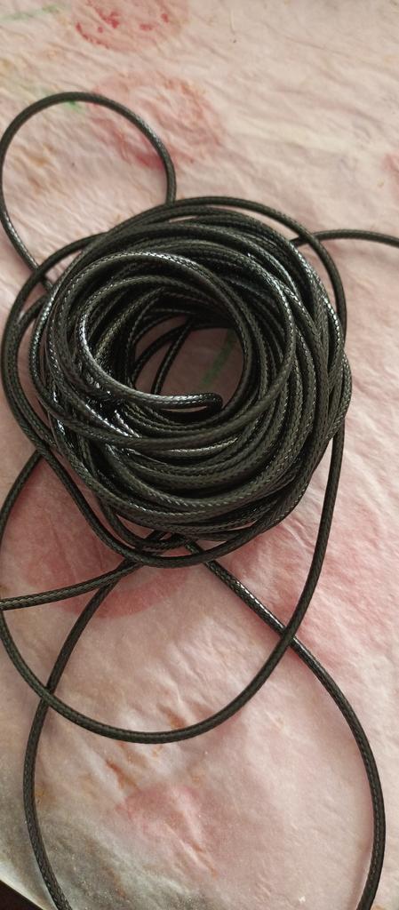 Sehr geehrte Damen und Herren, in der Beschreibung steht Lederschnur, aber in Wirklichkeit ist es eine gewöhnliche geflochtene Synthetikschnur, so in etwa!