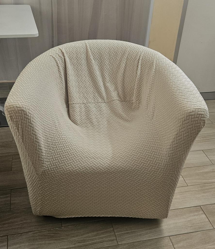 Wir haben zwar kleine Sessel, aber dieser Bezug ist so klein, dass er sich nicht so beziehen lässt, dass es wie ein Sessel aussieht und nicht wie ein Pouf.