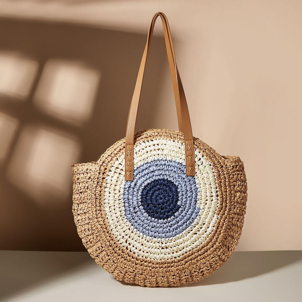Yogodlns Farbakzent Stroh Umhängetaschen Damen Lässige Sommer Henkeltaschen Große Shopping-Tasche