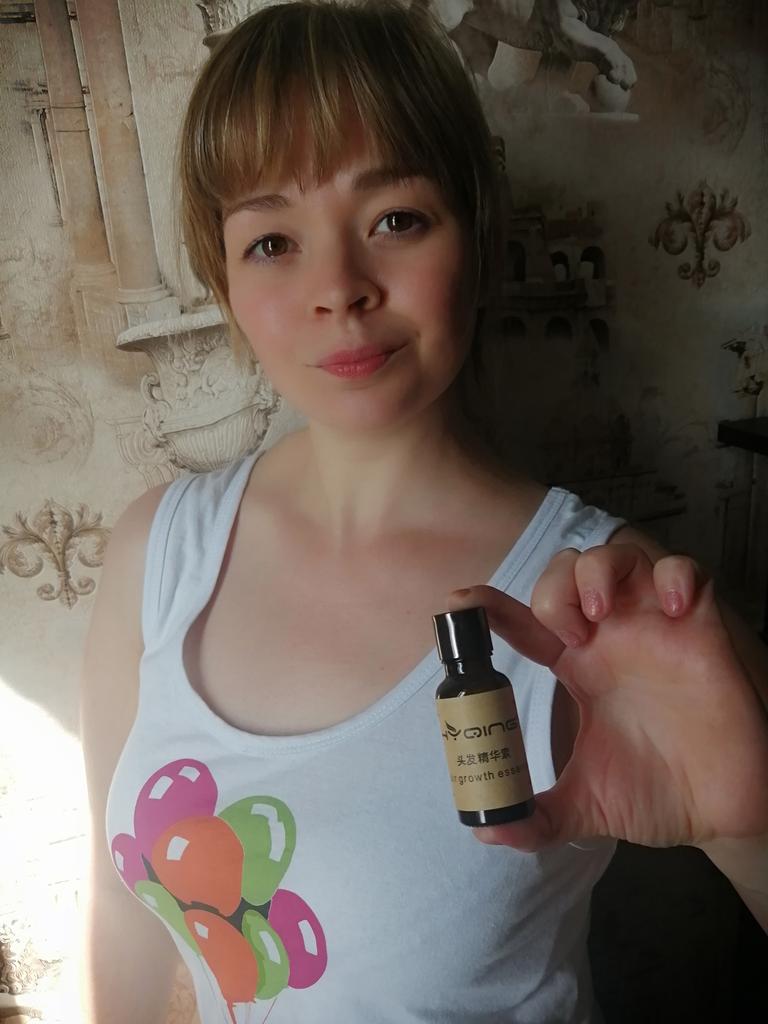 Habe die Ware in 36 Tagen erhalten. 🛵 Die Strecke wurde komplett verfolgt. Die Ankunft am Ausgabeort wurde per SMS 📲 angekündigt. Verpackung: Luftpolsterumschlag. Alles ist wohlbehalten angekommen 🎁. Die Box ist in Glimmer versiegelt. Die Termine sind deutlich gekennzeichnet. Fast alle Informationen sind auf Chinesisch 🤔. Es gibt eine Anleitung, aber auch auf Chinesisch 😅. Essenz zur Stärkung und zum Wachstum der Haare 👱♀️ der Marke HYQING 🌾 20 ml. Ich habe die Bewertungen gelesen und wollte dieses magische Mittel ausprobieren 😁. Das erste, wovor ich Sie warnen möchte, ist, dass die Essenz ein spezifisches starkes Zitrus-Kräuter-Aroma hat. Na, wer Ingwertee mag, wird mich verstehen 🍵 😉. Ich liebe das, für mich riecht es göttlich 😁, aber wenn du den Geruch von Ingwer nicht ertragen kannst, dann solltest du vom Kauf absehen 👼. Die Anwendung ist ganz einfach: Fügen Sie die Essenz Ihrem Shampoo oder Ihrer Maske hinzu (3 ml Essenz pro 100 ml Shampoo) und genießen Sie das Ergebnis. Ich füge Klettenöl hinzu und mache Masken für ein oder zwei Stunden 🕗. Es ist zu früh, um über ein signifikantes Ergebnis zu sprechen, da ich es nur dreimal verwendet habe. Aber es scheint mir, dass sogar das genug war, weil die Haare weniger auszufallen begannen. Die Essenz löst bei mir persönlich keine allergischen Reaktionen aus. Aber wir erinnern uns trotzdem daran, dass jedes neue Kosmetikprodukt getestet werden muss ☝️. Die Essenz hat mir gut gefallen, wenn euch der Ingwergeruch nichts ausmacht, empfehle ich euch es zu probieren 😉. Wenn die Rezension hilfreich war, unterstützt mich mit Likes und Dislikes ❤❤❤. Viel Spaß beim Einkaufen und schnelle Lieferungen an alle 🛍😊🚀🍁. Wenn Sie Promo-Codes für 10 % oder 11 %💰 benötigen, gehen Sie zu meinem Telegram-Kanal: Olena.joom.thebest oder t.me/olenajoom 😘.