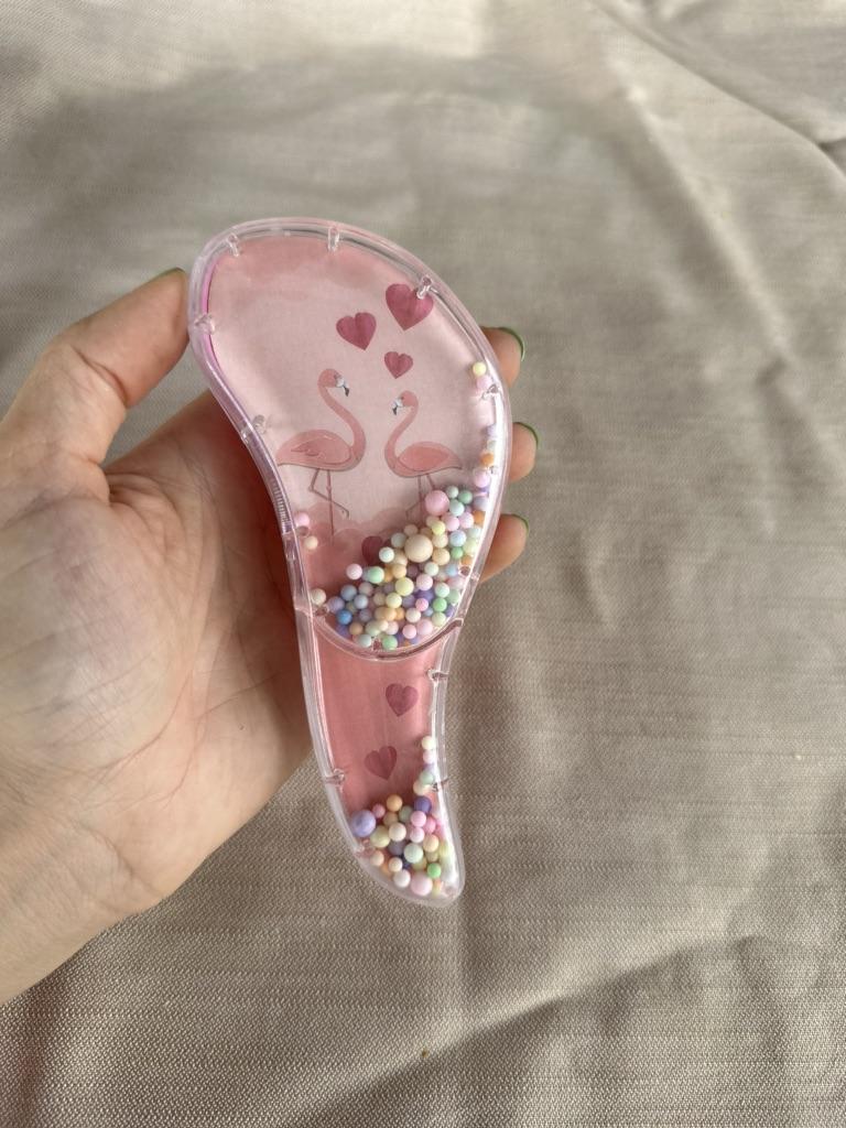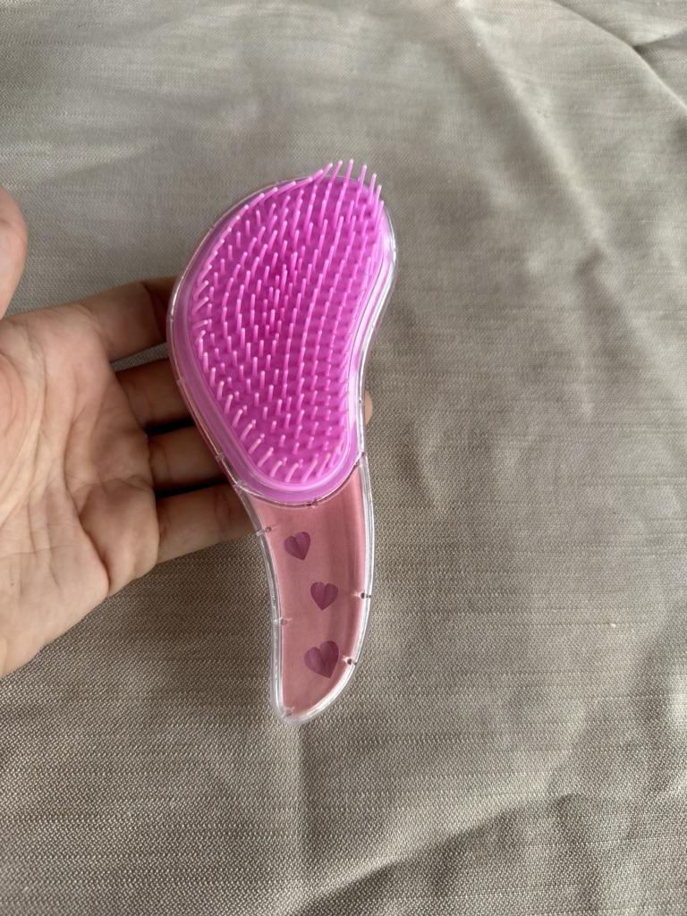 Ich bin dankbar für den Pinsel. Es hat weiche Zähne, lässt sich leicht kämmen und vermittelt ein Massagegefühl auf der Kopfhaut. Das Mädchen ist begeistert.