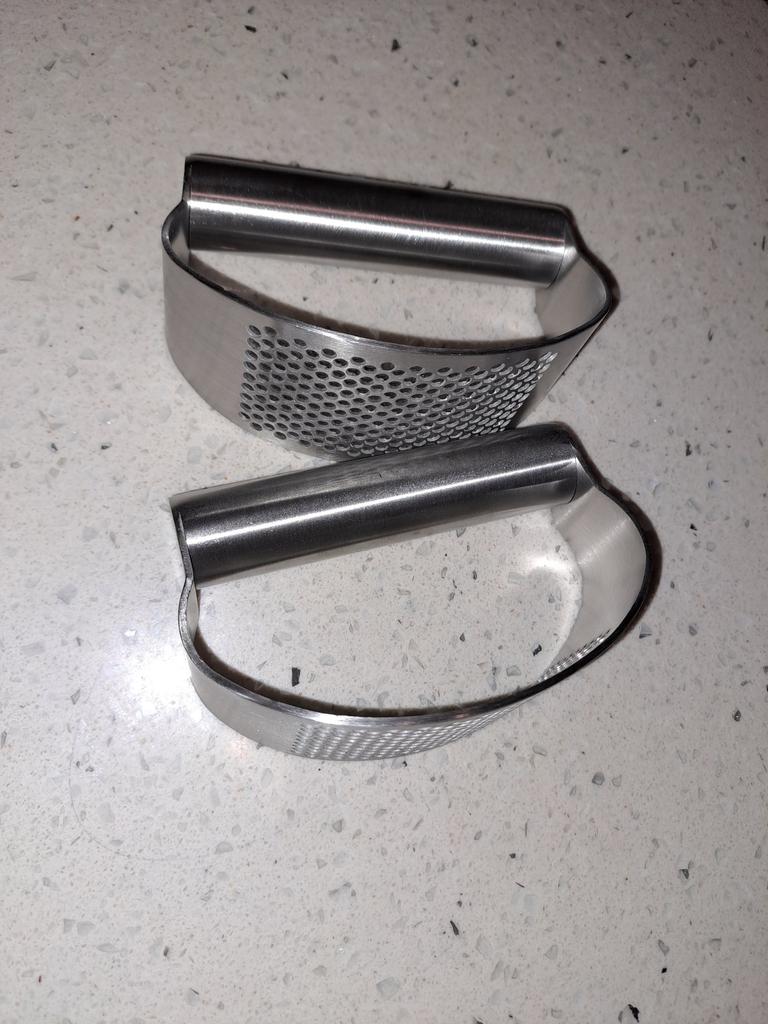 Edelstahl-Knoblauchpresse, manuell, gebogen, zum Schleifen, Zerkleinern, Multifunktions-Gemüsekochen, Brecher, Küchenhelfer