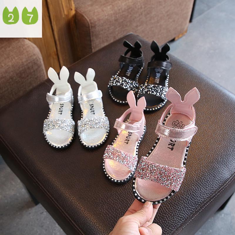 1–12 Jahre alte Kinder-Sandalen, Hasenohren, Mädchen, Strass-Schuhe, römische Schuhe, süße Prinzessinnen-Schuhe