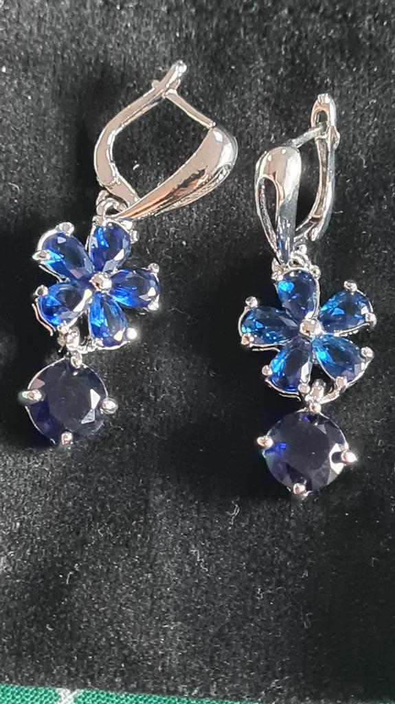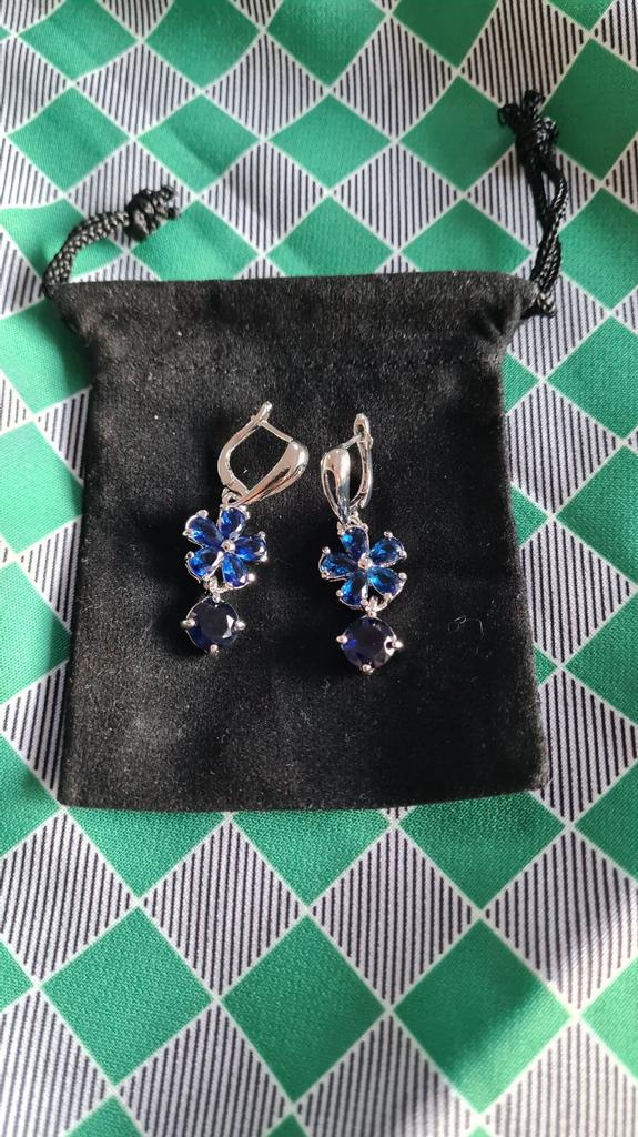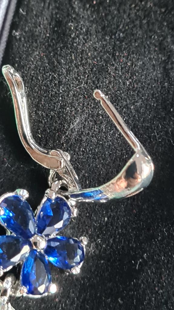 Atemberaubende Ohrringe von Sodrov in Silber-Finish mit wunderschönen blauen Steinen. Perfekt für den besonderen Anlass. Material ist Kupfer, sehr leicht und angenehm in den Ohren. Kam in Veloursbeutel in 3,5 Wochen nach Irland. Viel Spaß beim Einkaufen!