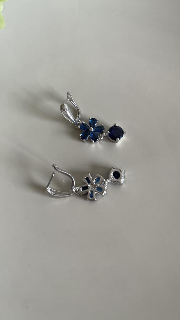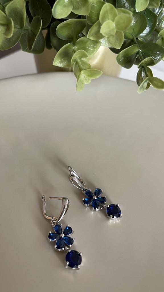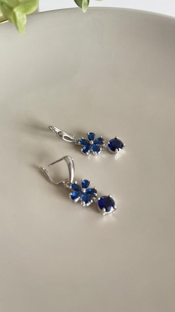 SODROV Tropfenohrringe mit königsblauer Blume und Zirkon