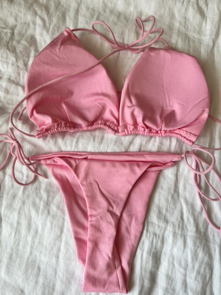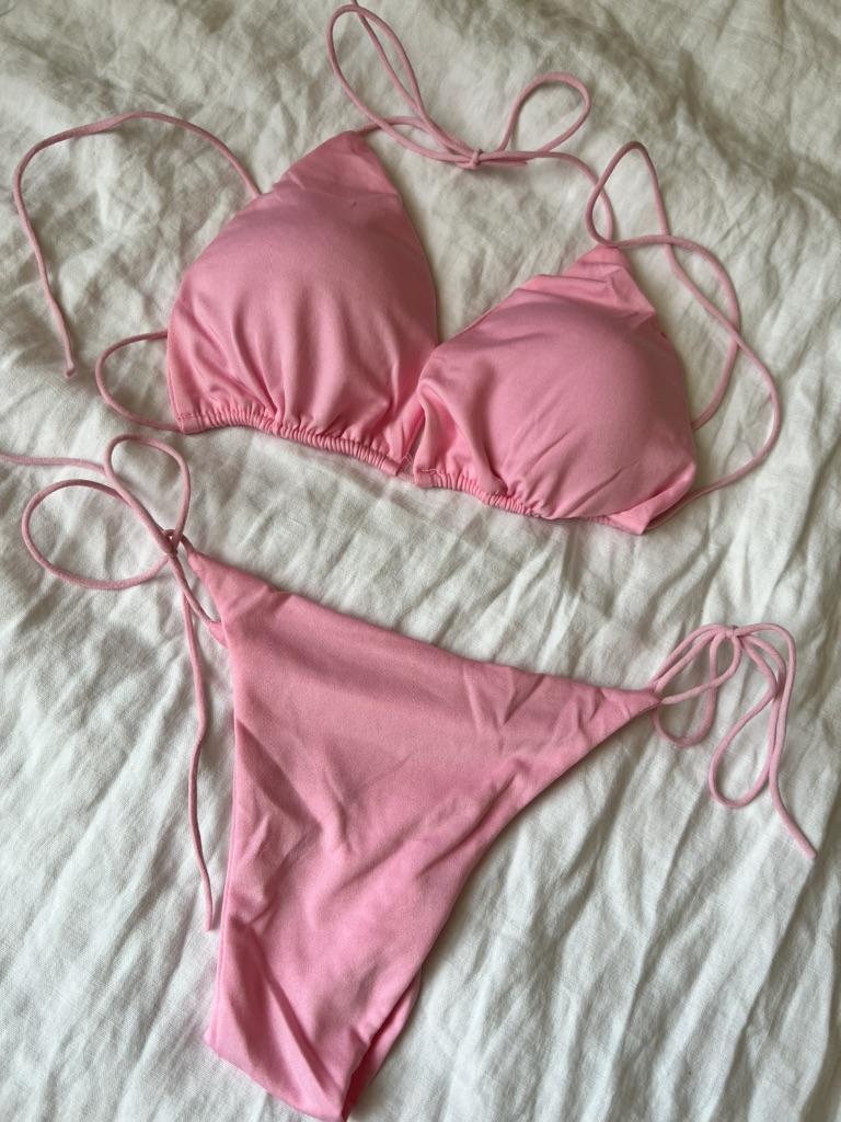 2 Teile/satz Bikini Set Einfarbig Halter Neck Strap Tanga Frauen Badeanzug Set für Strand
