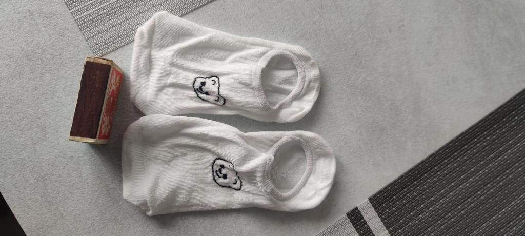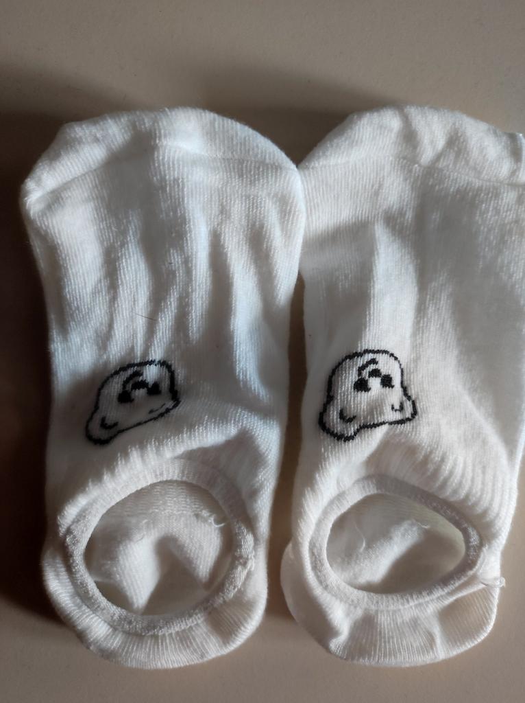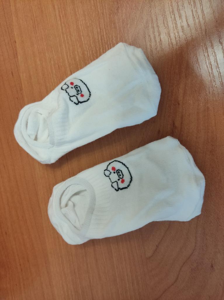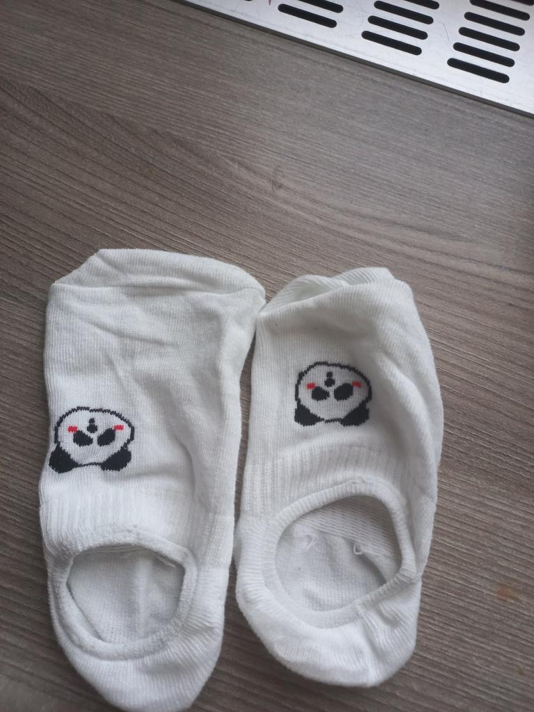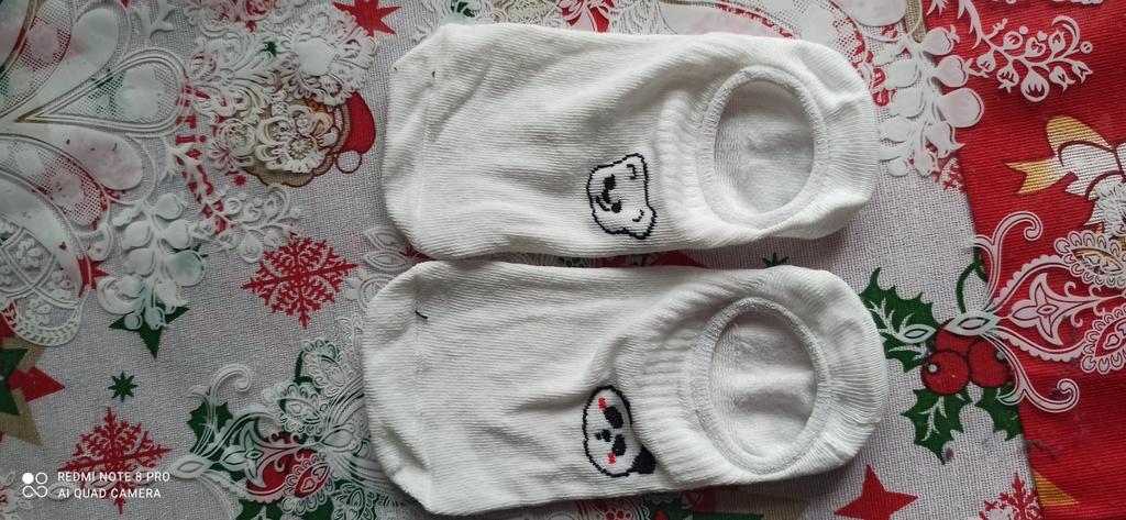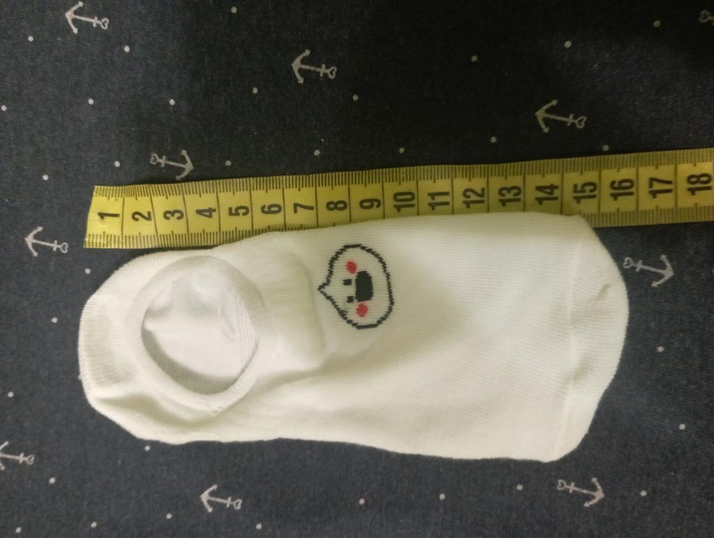 Die Socken sehen aus, als wären sie für Kinder gemacht, sind aber sehr dehnbar. Sie passen in Größe 38. In der Mitte mit einem Gummizug verstärkt, damit sie gut am Fuß sitzen und nicht verrutschen.
