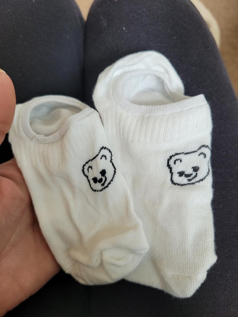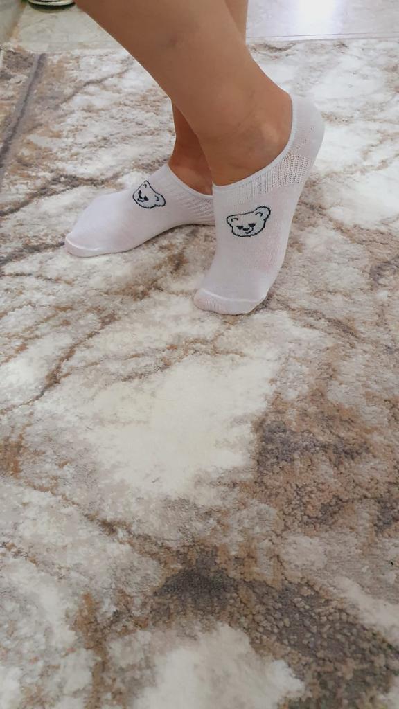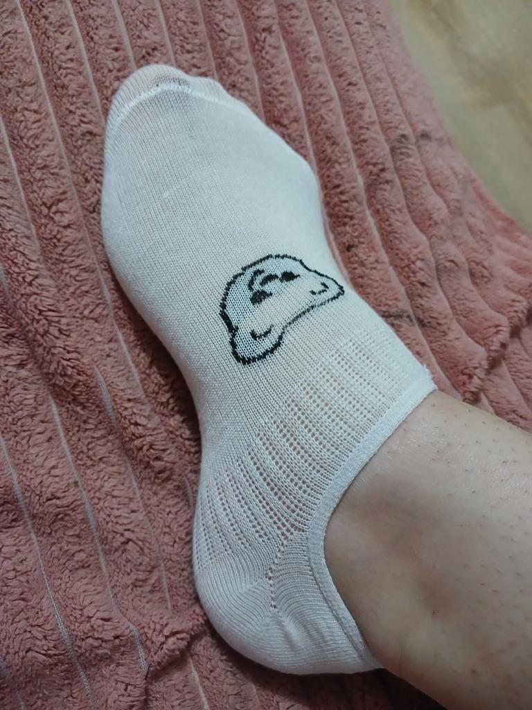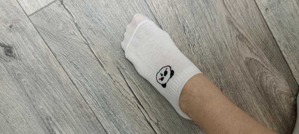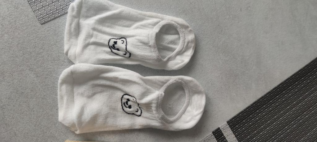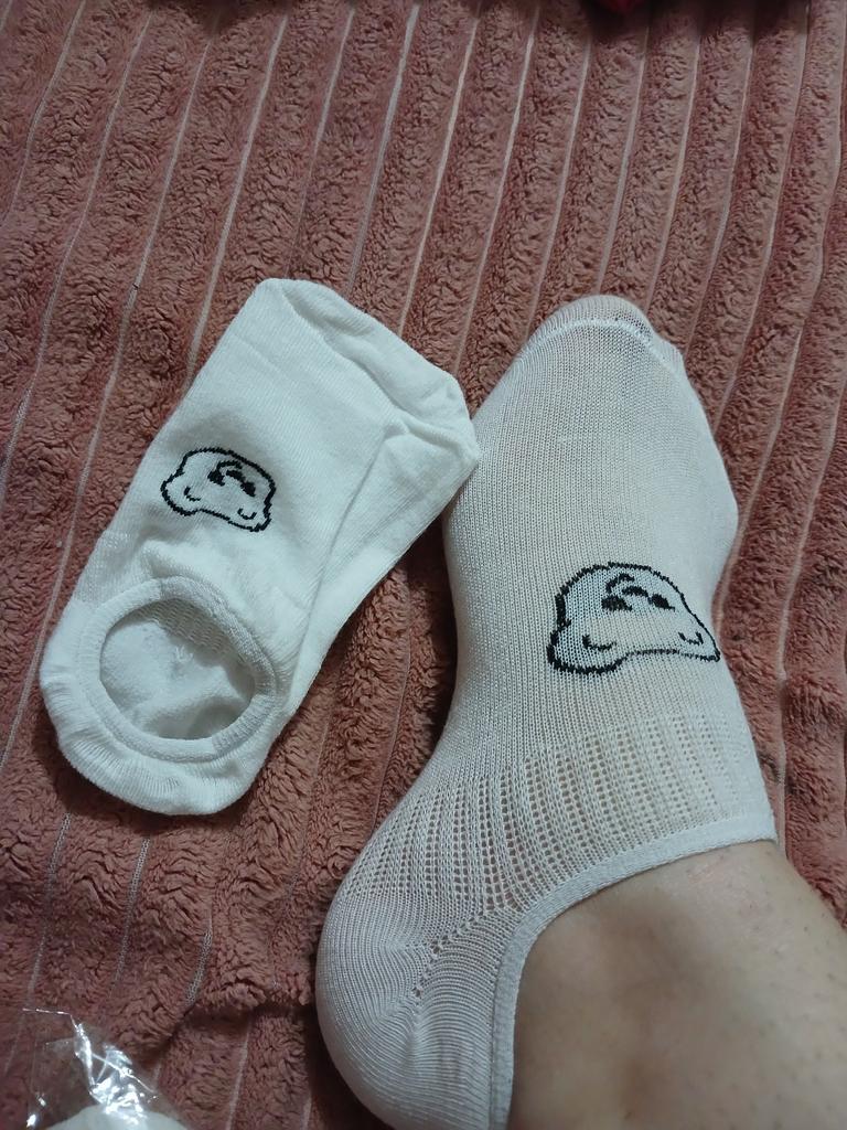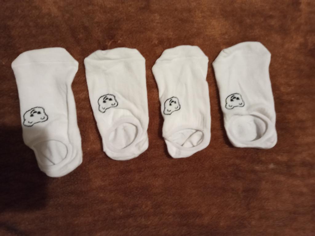 Die Socken sehen aus, als wären sie für Kinder gemacht, sind aber sehr dehnbar. Sie passen in Größe 38. In der Mitte mit einem Gummizug verstärkt, damit sie gut am Fuß sitzen und nicht verrutschen.
