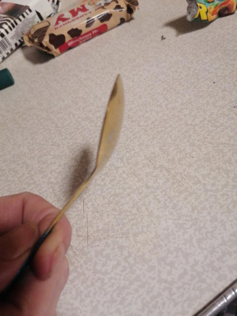 Ein schöner, interessant aussehender Löffel, aber das Metall ist weich – der Löffel verbiegt sich bei leichtem Druck
