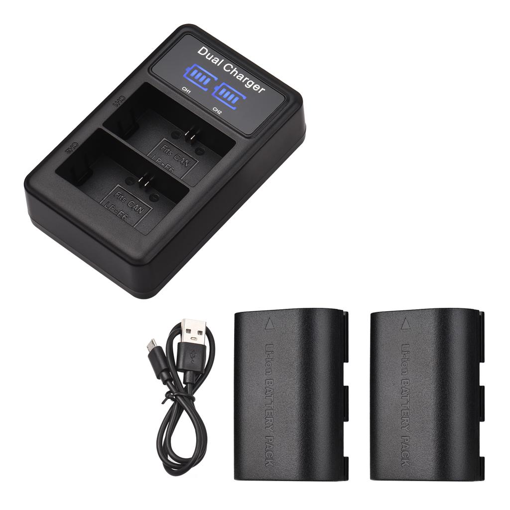 LP-E6/E6N Akku- und Ladegerät-Set, 2 Stück 7,4 V 2650 mAh Akku + 1 Stück LED2-LPE6 Zweikanalkamera
