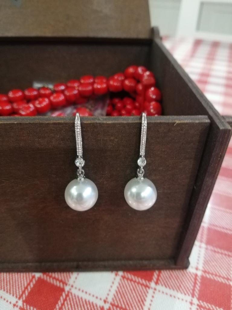 Ich habe die Ohrringe zu einer Halskette aus Flussperlen bestellt, allerdings unterscheiden sich die Ohrringe deutlich von echten Perlen. Ich werde sie nicht im Set tragen.