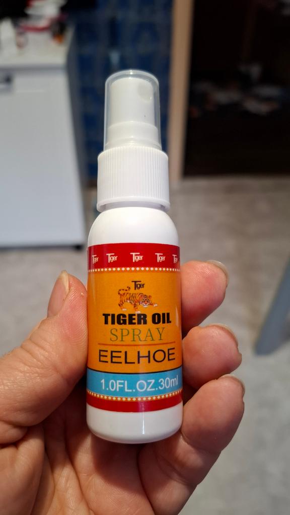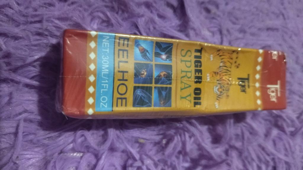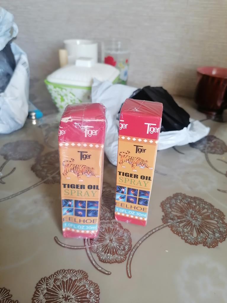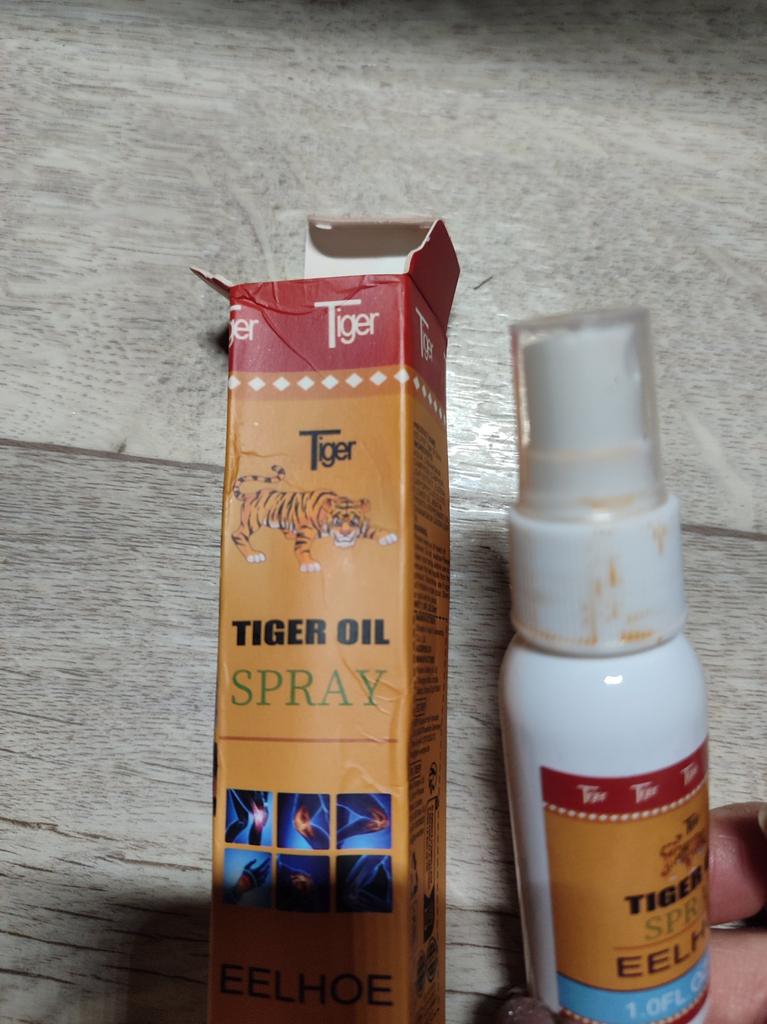 Tigerspray mit Öl gegen Schmerzen in Muskeln und Gelenken. Es lindert wirklich Schmerzen, aber nicht sofort, wie viele es sich wünschen, sondern bei längerer Anwendung, wie alle Gelenksalben.