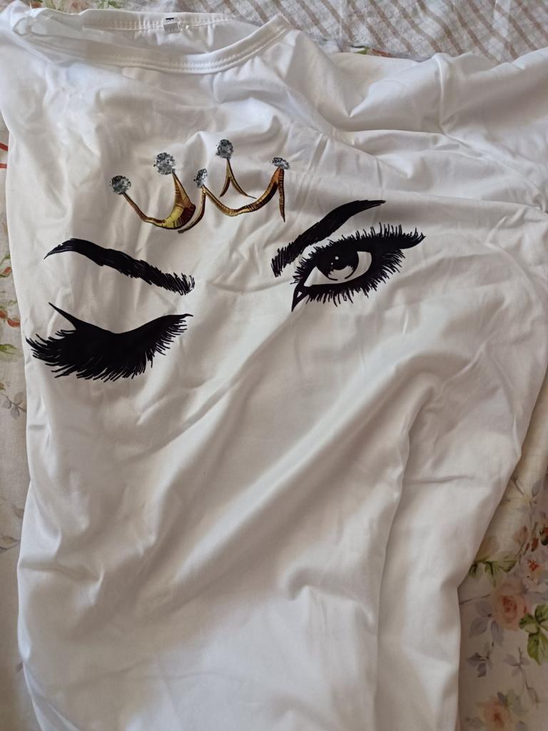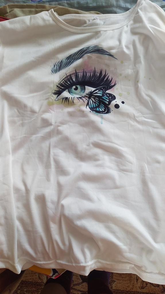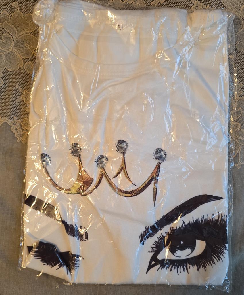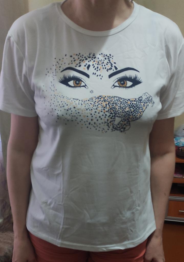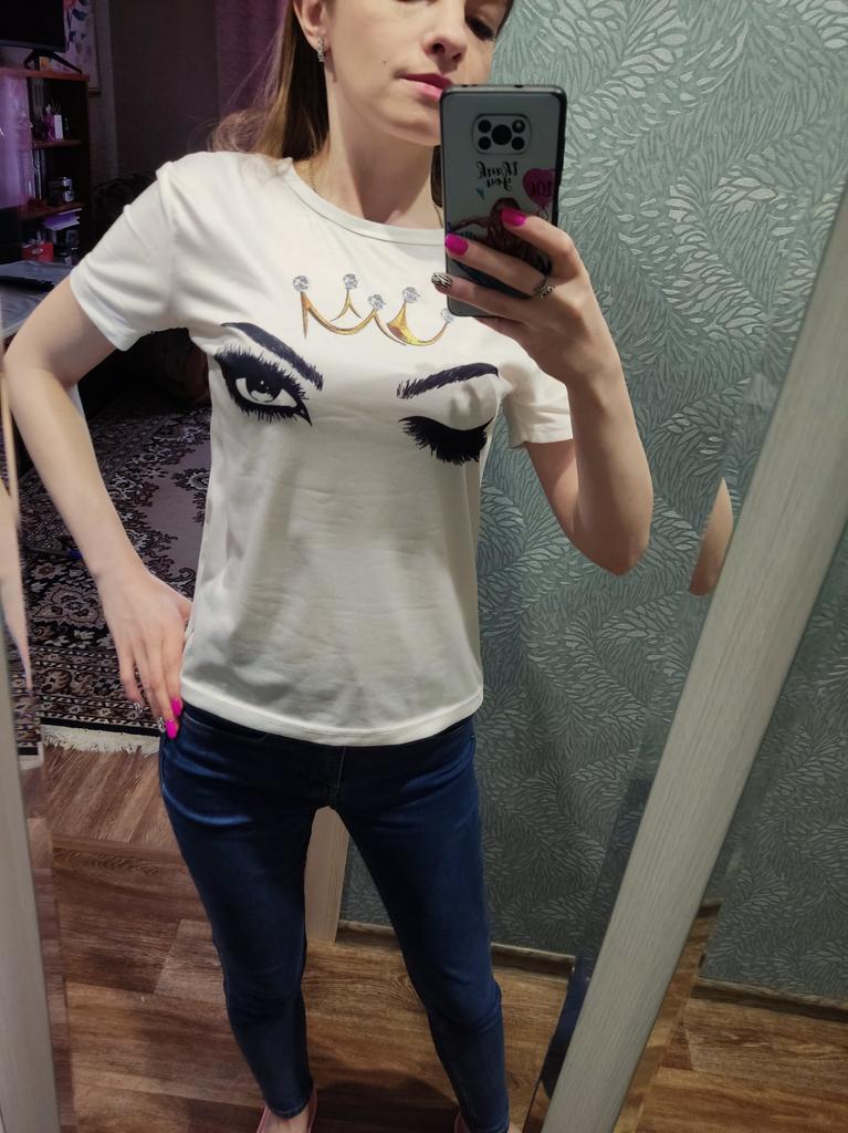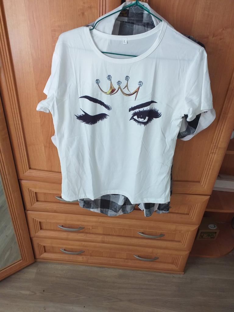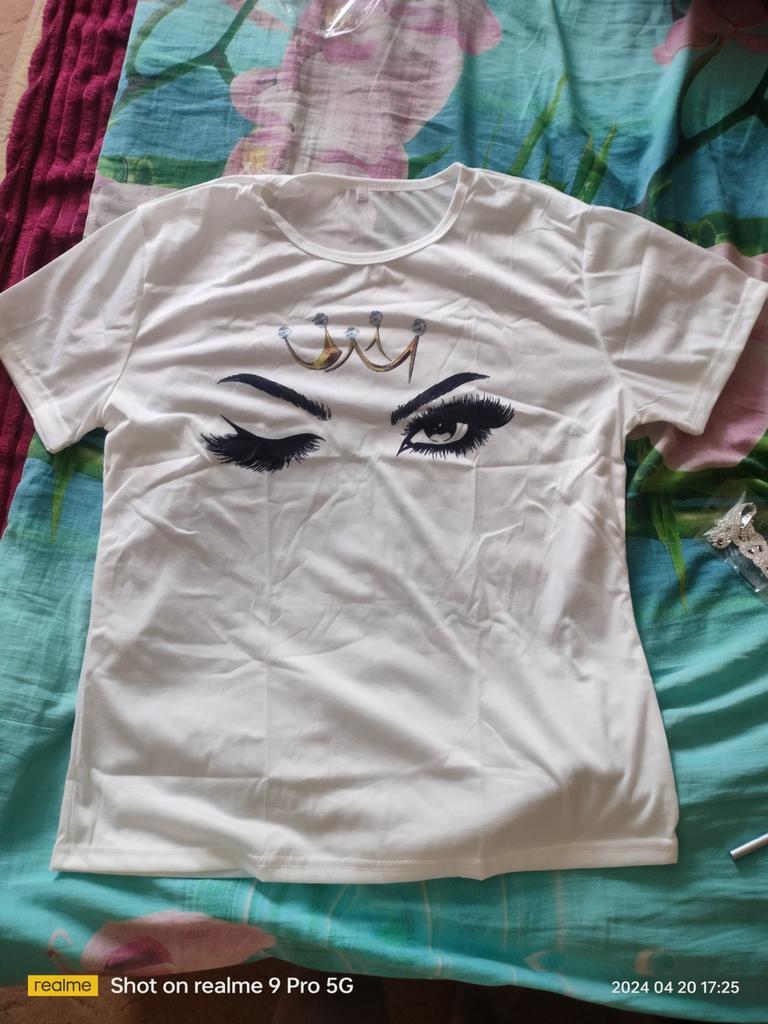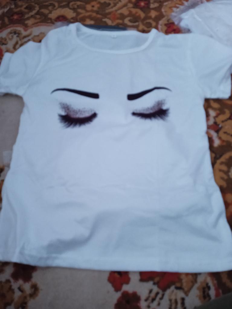 Dies ist nicht die Bluse auf dem Foto, sondern nur ein normales T-Shirt mit Aufdruck, aber aus besserem Material. Hübsch