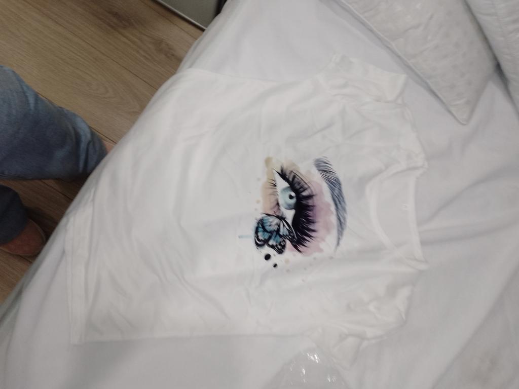 Leider hat sich beim Bügeln des T-Shirts der Aufdruck auf den Rücken übertragen, sehr ärgerlich🥺