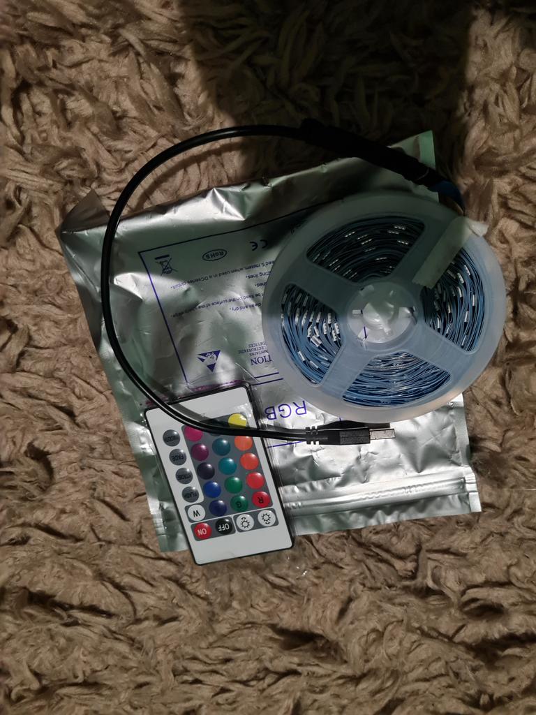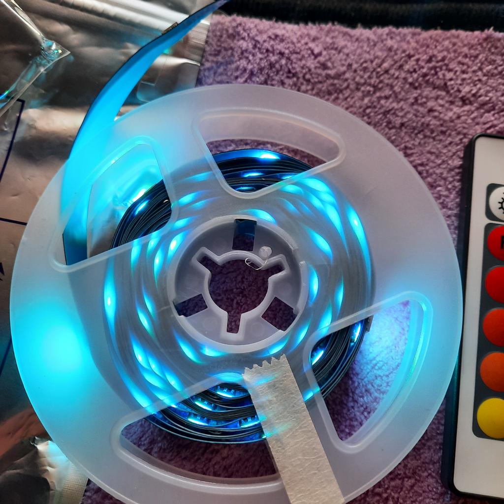 Das Klebeband leuchtet in verschiedenen Farben, die Fernbedienung funktioniert, eine Batterie war dabei. Die Lieferung wurde verfolgt