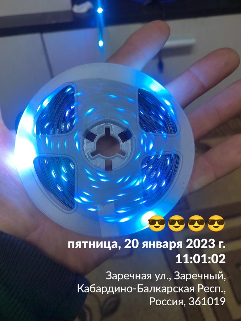 Das Band ist in gutem Zustand, die Batterien sind dabei, die Dioden haben einen großen Abstand zueinander, 8,5 cm, was mich am meisten schockiert hat, war, dass es auf einer schwarzen Basis war. Damit habe ich definitiv nicht gerechnet. Dies wird nirgends hervorgehoben und befindet sich nicht auf den Bildern. Dafür einen Minusstern.
