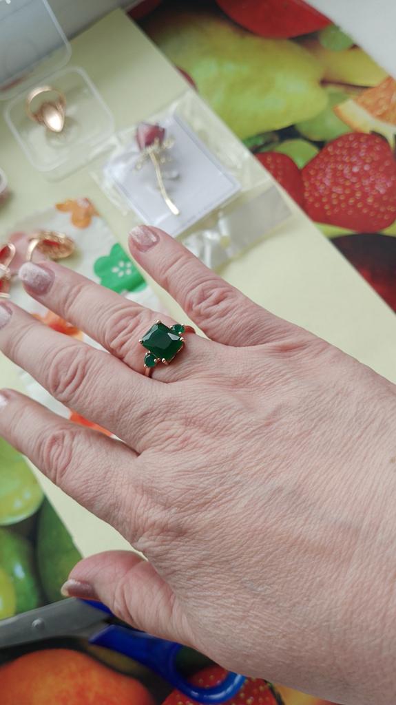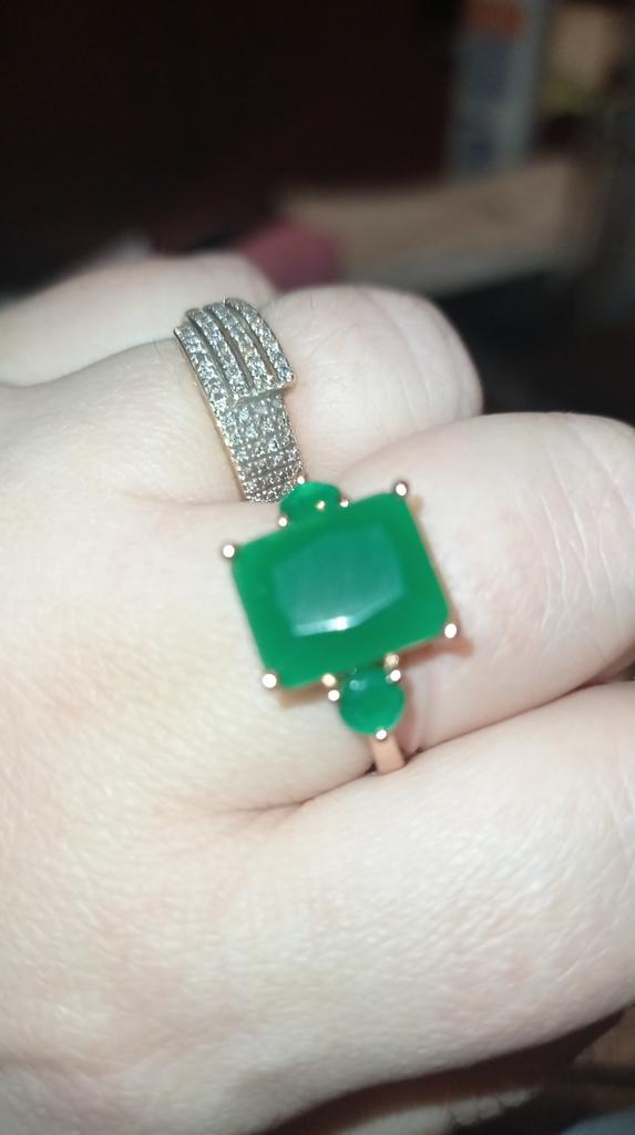 Prachtvoller Ring! Tiefgrüne Steine. Blinkt. Goldfarbenes Metall. Sieht sehr gut aus.