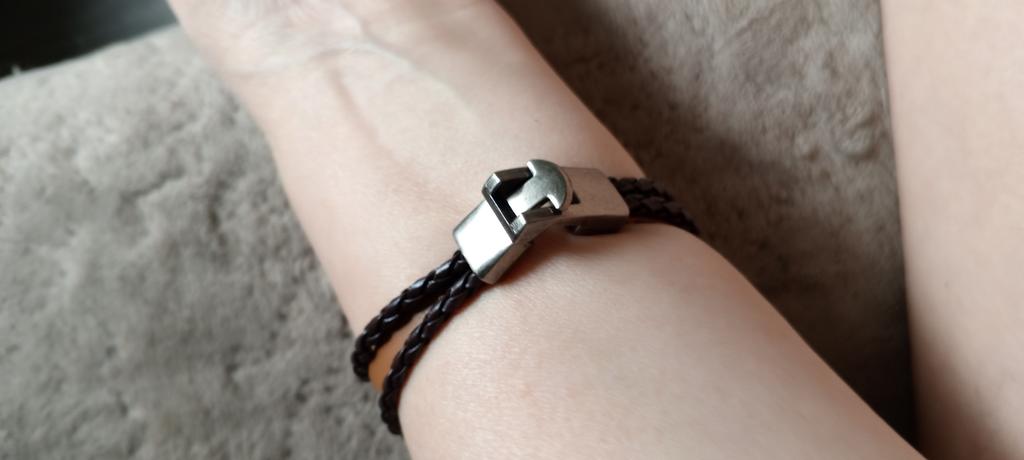 Ein dünnes Armband, der Verschluss ist meiner Meinung nach nicht sehr zuverlässig, das Armband muss fest am Handgelenk sitzen, wenn es locker ist, dehnt sich der Verschluss, aber ansonsten ist es ganz nett