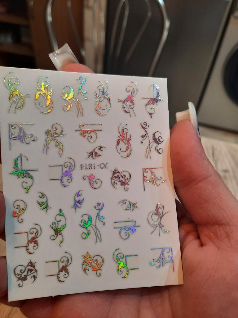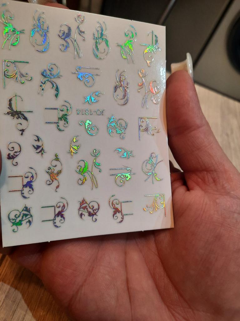 1 Blatt 3D Bohemia holografischer Nagelkunst-Aufkleber, abstrakte Liniengeometrie, französische Nageldesign-Maniküre-Dekoration
