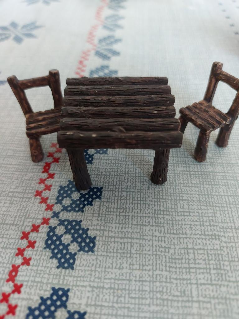 Runder Tisch und Stuhl im pastoralen Stil, Ornamente, Mikroansicht, saftiges Puppenhaus, Mini-Couchtischstuhl