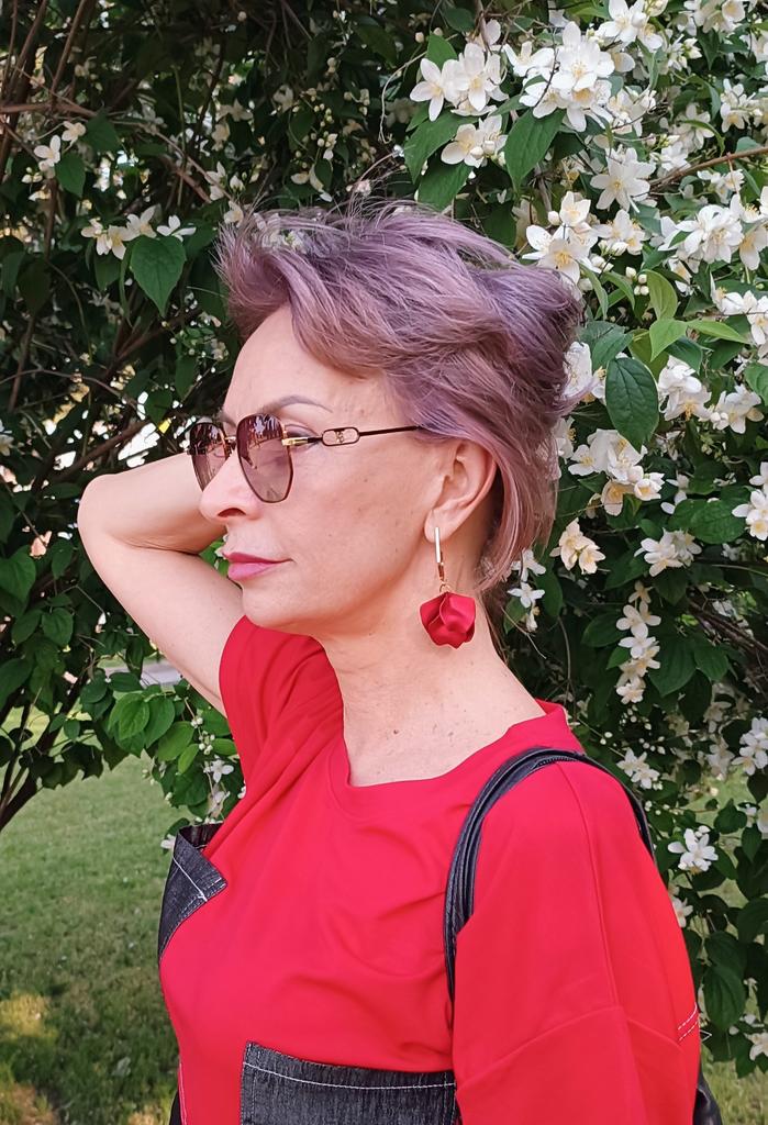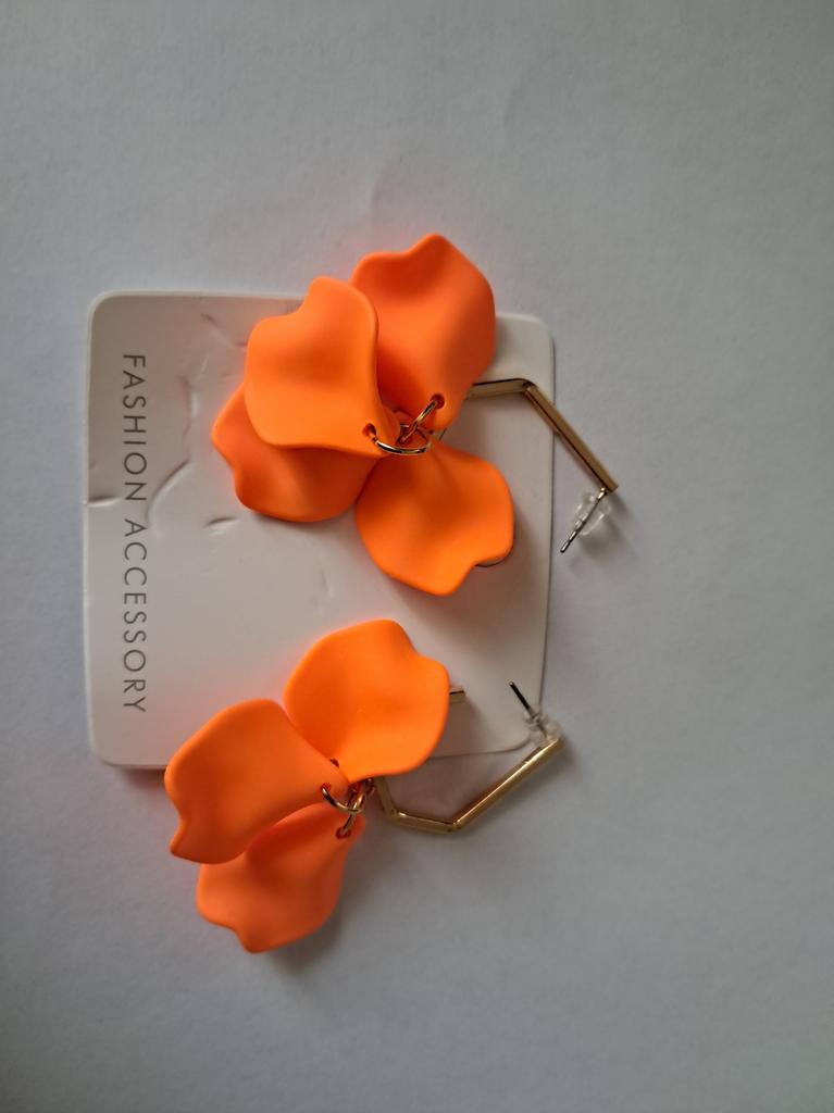 Die Farbe ist nicht die gleiche wie auf dem Foto, etwas heller, näher an Neonorange als an Karotte. Während des Transports ist ein Blütenblatt gebrochen, aber ich war nicht verärgert, Asymmetrie ist in Mode