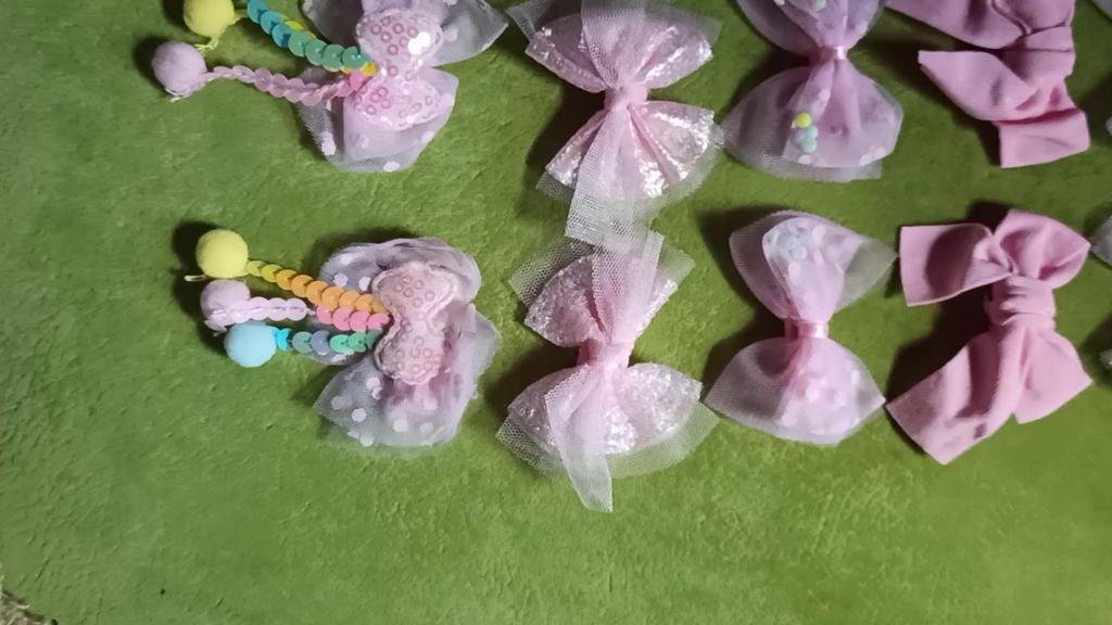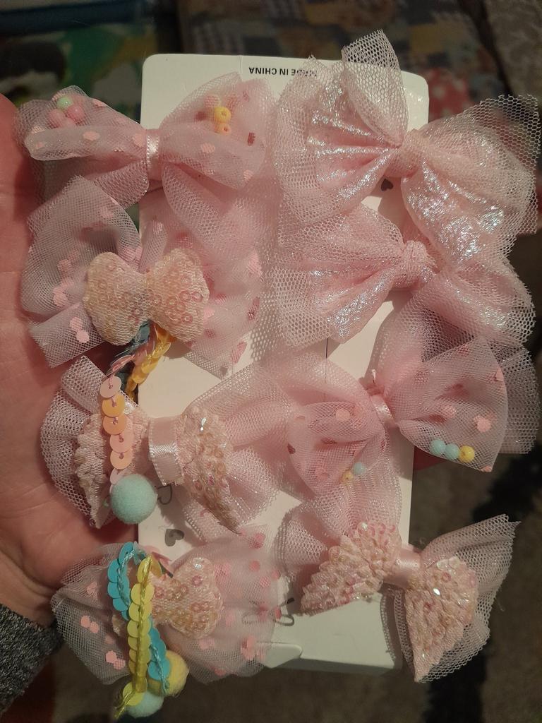 Die Haarspangen sind süß, ich habe einen Stern abgezogen, weil einige der Schleifen schief und geklebt sind.