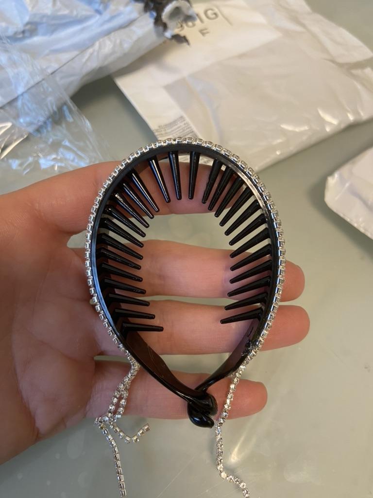 Mit der Haarspange bin ich zufrieden, nur ein Strassstreifen hat sich zur Hälfte gelöst, kann aber wieder aufgeklebt werden. Hält gut auf den Haaren. Ich empfehle