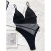 Sexy Mesh Sheer Spleißen V-ausschnitt High Cut Frauen Bademode Einteiligen Badeanzug Weibliche Monokini Gepolsterte Badende Badeanzug Schwimmen