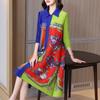 Gefaltete Lange Rock Polo-lose Kleid Große Größe Dünne Weibliche 2022 Neue Sommer Druck Sieben-punkt Hülse Drehen unten Kragen Kleid