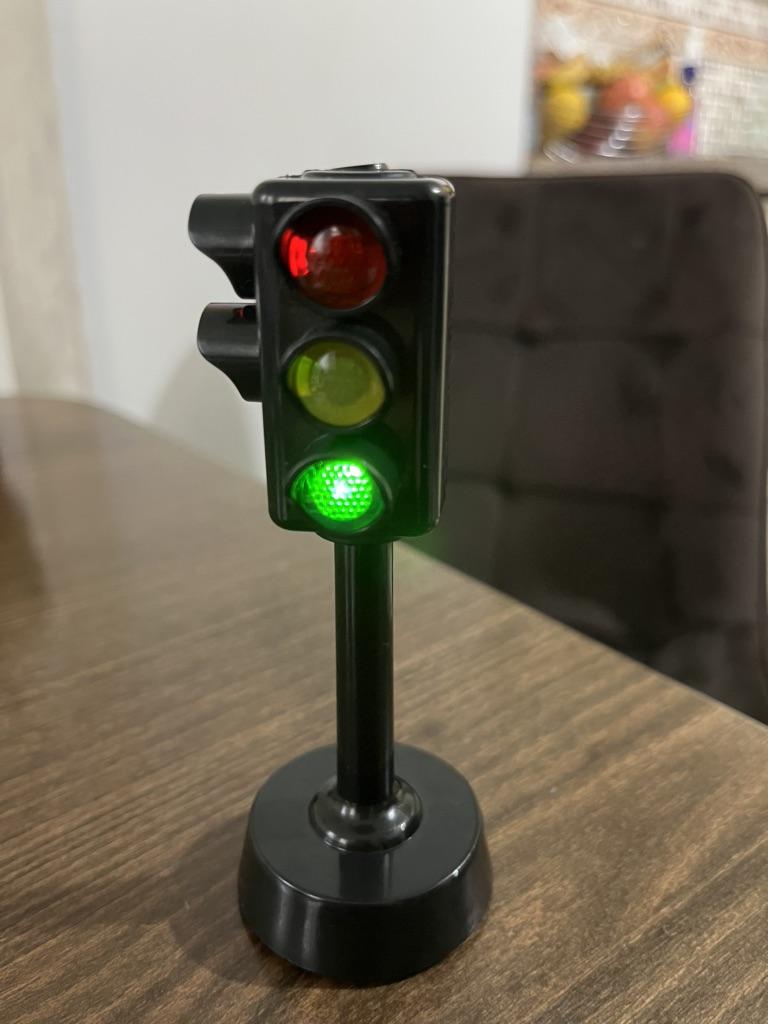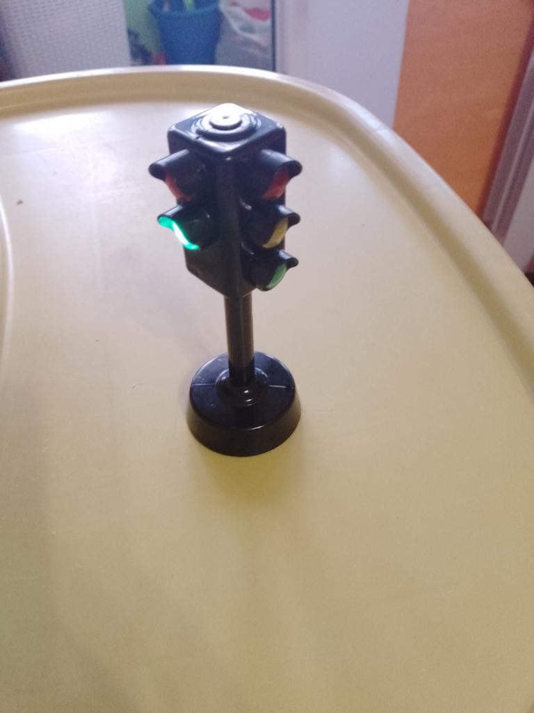Dem Kind hat es gefallen. Sie spielen mit den Autos und dieser Ampel!