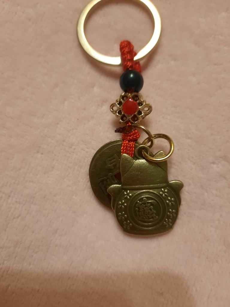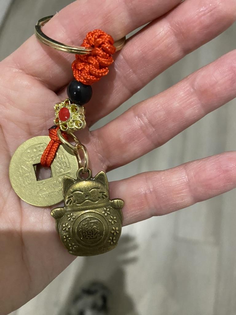 1 STÜCKE Glückliche Katze Fünf Kaiser Münze Messing Schlüsselanhänger Anhänger Niedlichen Tier Handgemachten Schmuck