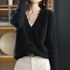 Einfarbige Strickjacke mit V-Ausschnitt für Damenmode, passender, langärmeliger Strickmantel
