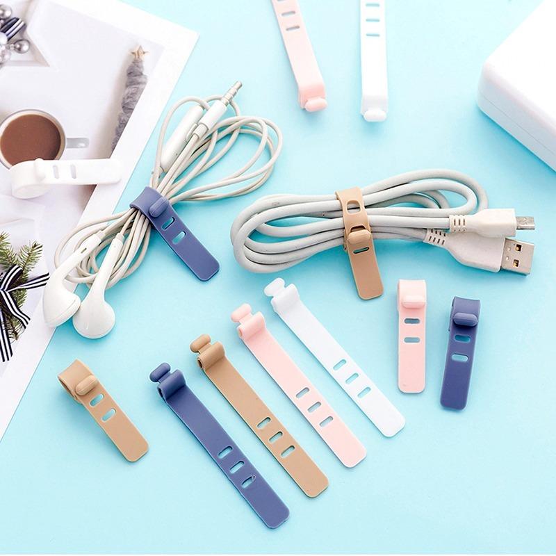 10PCS Cable Organizer Silicone Wire Binding Data Cable Tie Management Bobbin Winder Marker Holder Tape Lead Straps