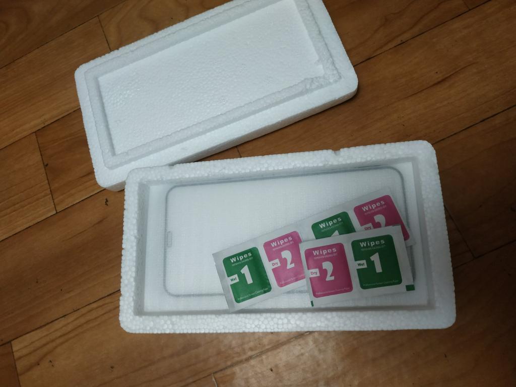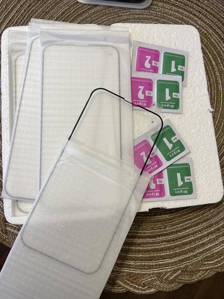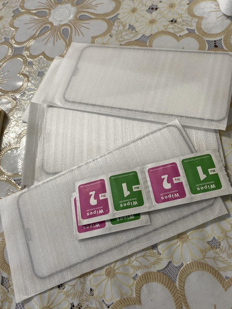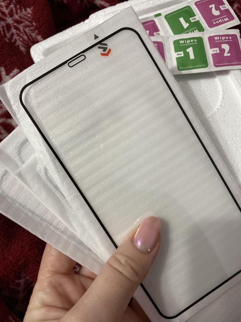 Es kam nur eine Packung Taschentücher, obwohl es vier hätten sein sollen. Und der schwarze Umriss auf dem Glas ist zu groß für das iPhone 11