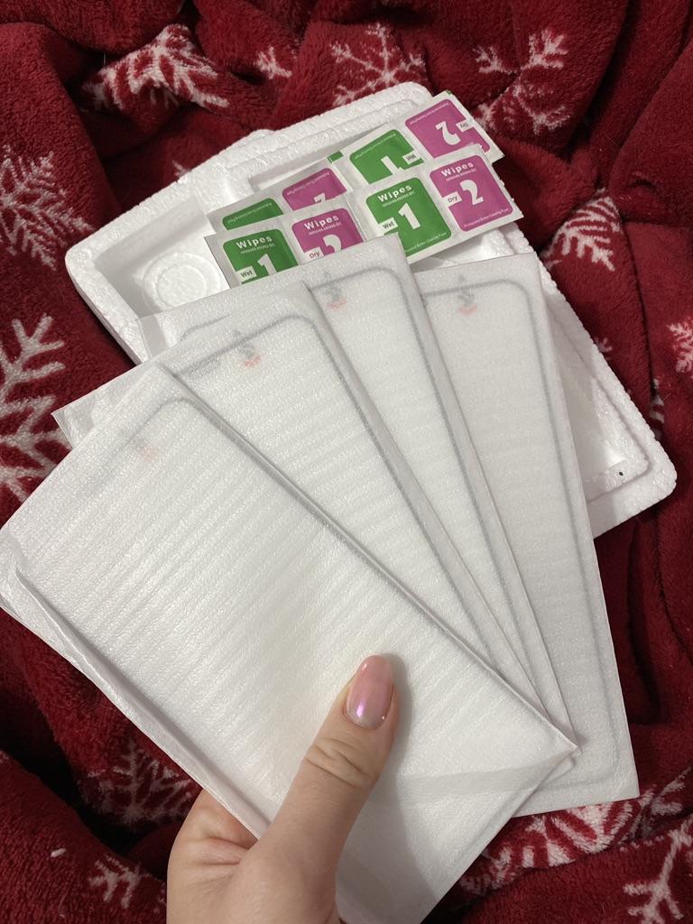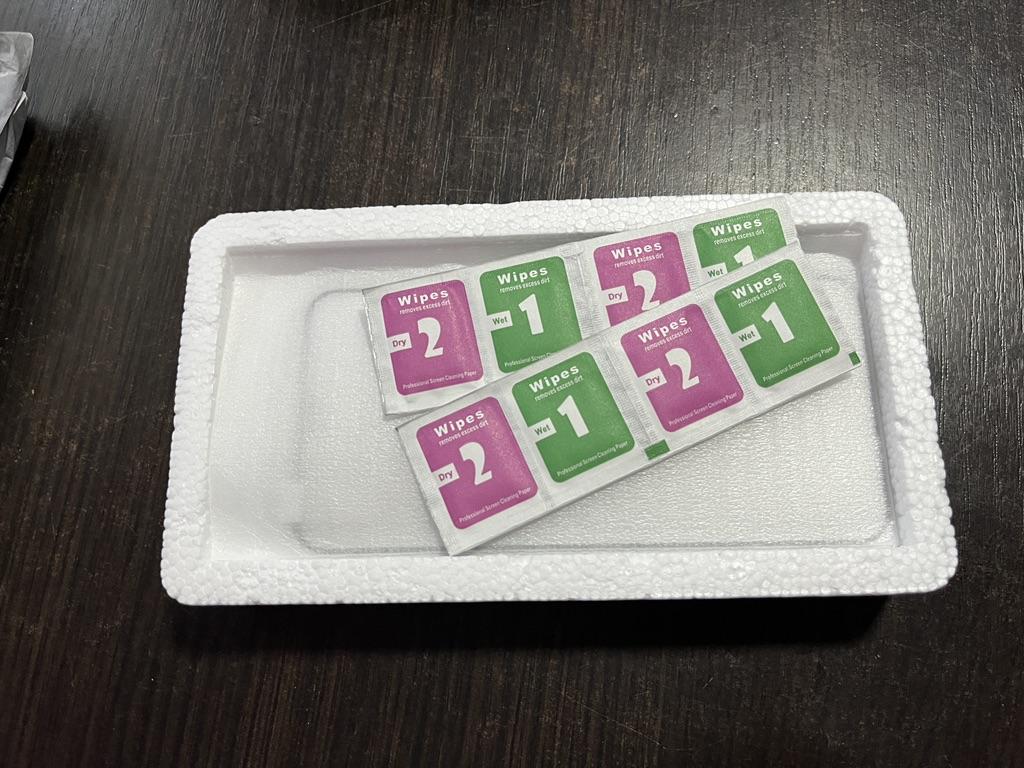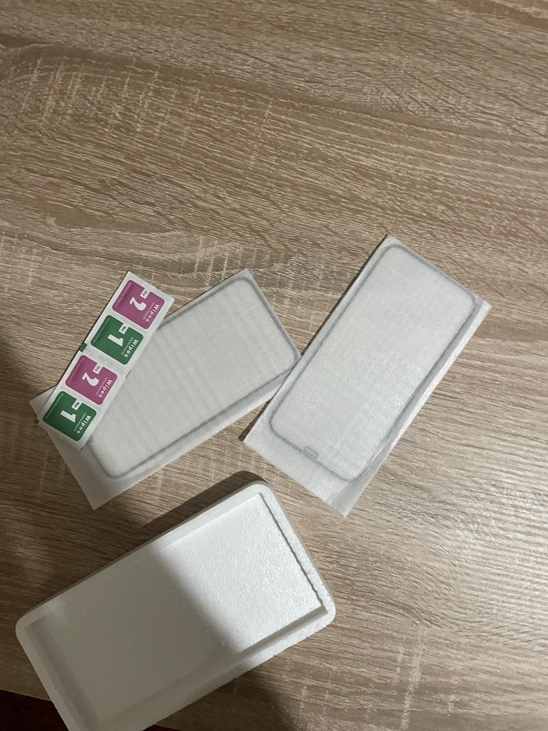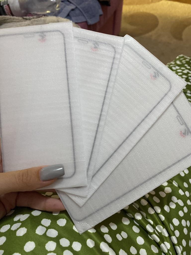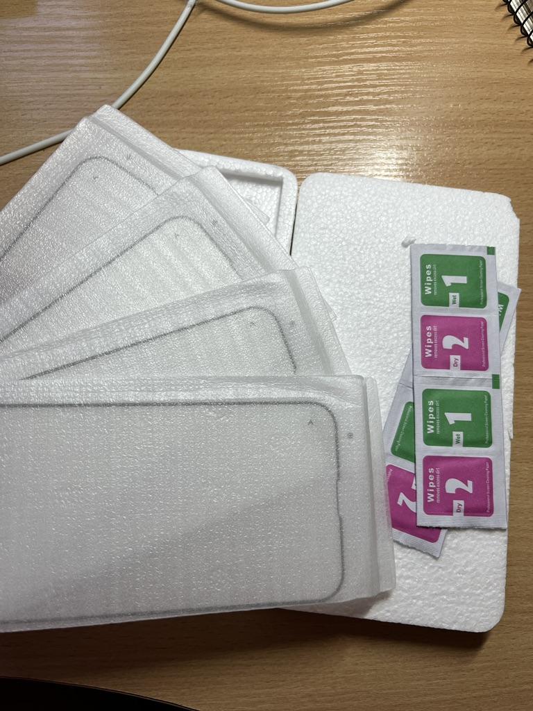 Es kam nur eine Packung Taschentücher, obwohl es vier hätten sein sollen. Und der schwarze Umriss auf dem Glas ist zu groß für das iPhone 11