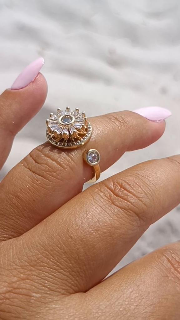 1 Stück Damen-Fidget-Spinner-Ringe, Zirkonia, Sonnenblumen-Angstringe, drehbare Ringe