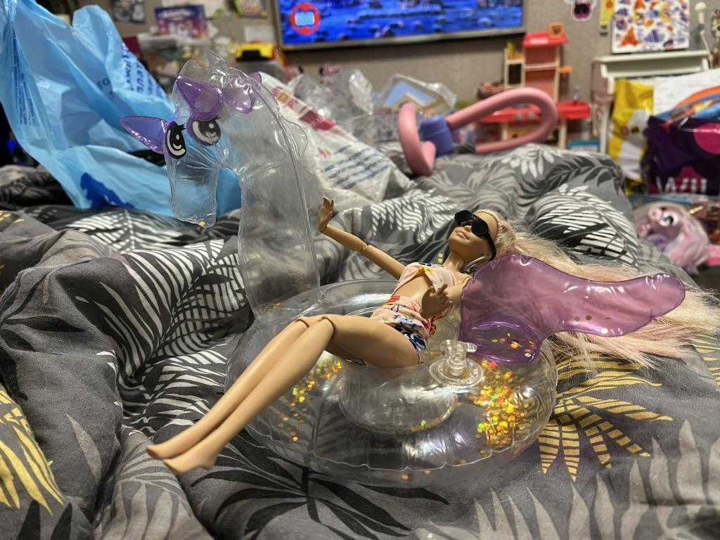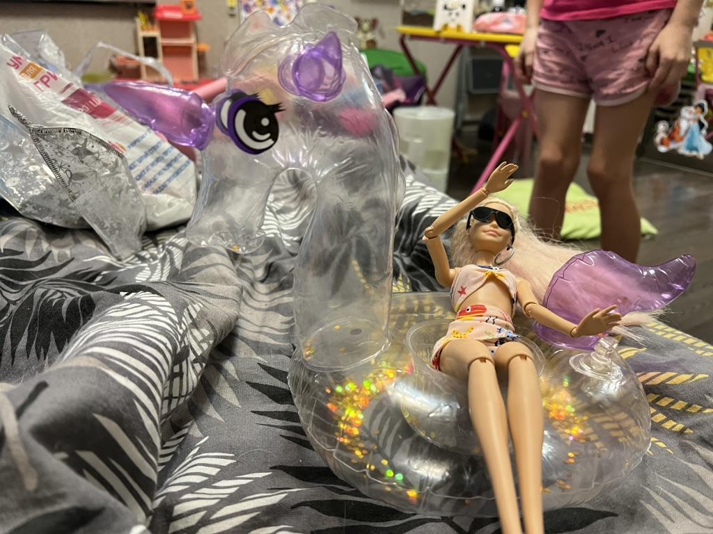 Cooler Flamingo und Badeanzug. Aber ich dachte, es wäre eine Puppe..