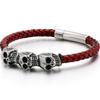 Geflochtenes schwarzes rotes Lederarmband für Männer, Wickelarmband aus Rindsleder, Punk-Rock, Gothic, 316L Edelstahl, Totenkopf-Kopfschmuck