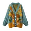 Herbst Winter Ölgemälde Stil Pullover Pullover Frauen Retro Jacquard Strickjacke Dame Mantel Pullover Mujer