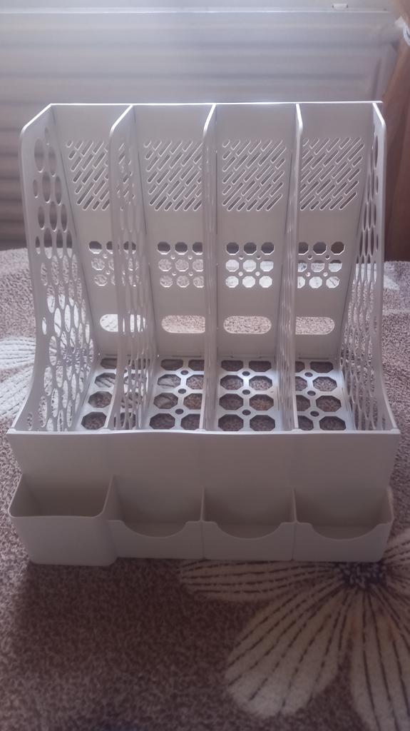 Ein wunderbarer Organizer für Papiere, praktisch zum Sortieren von Dokumenten. Die Montage ist einfach, der einzige kleine Nachteil ist, dass eine Platte leicht verformt ist, was aber kein Hindernis für die Arbeit darstellt.