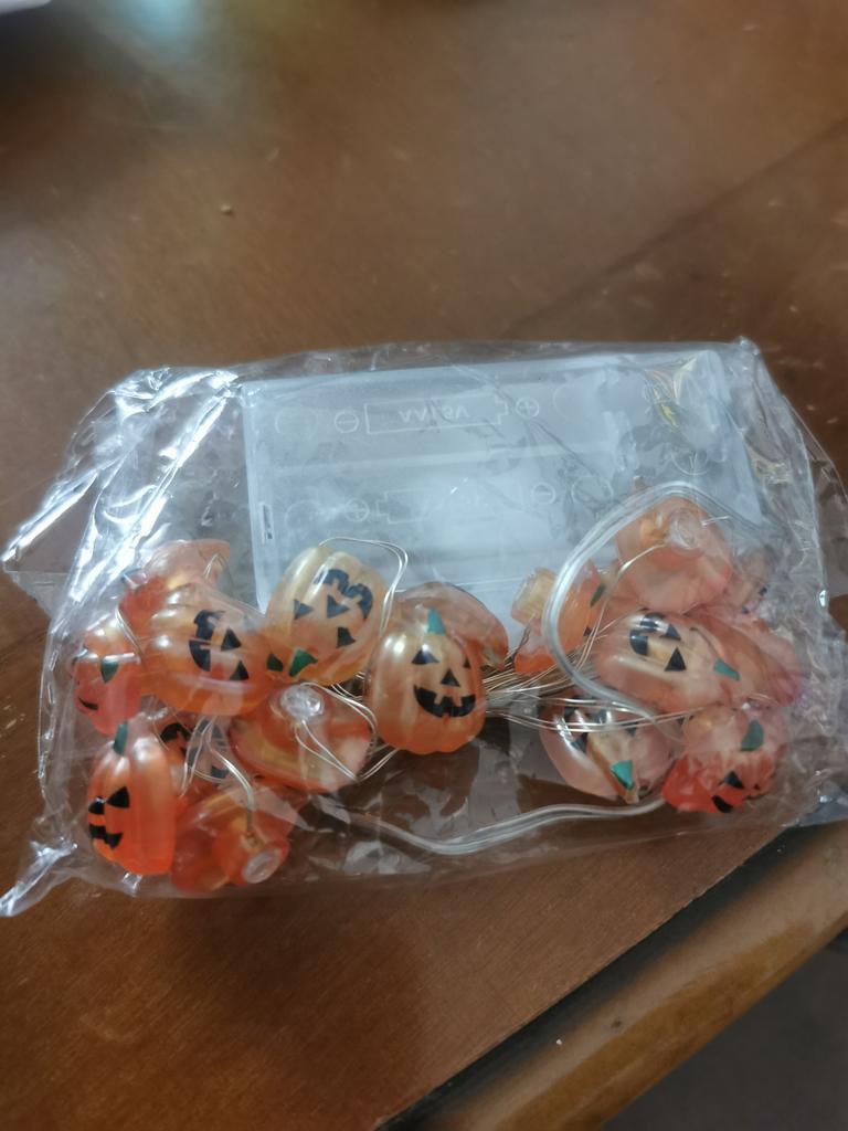 Süße Lichterkette, leider sind die Kürbisse nicht rund, sodass die Kürbisse nur auf einer Seite sichtbar sind.