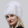 Neue Stil Echte Nerz Pelzmütze flauschige Winter Dame Natürliche Fuchs Pelz Beanie Ball Hut Stricken Warme Echte Nerz Pelz Kappe Luxus frauen Hut