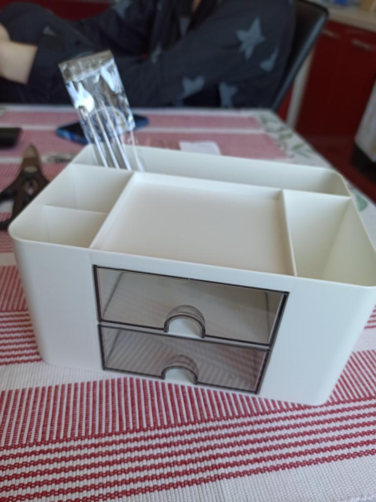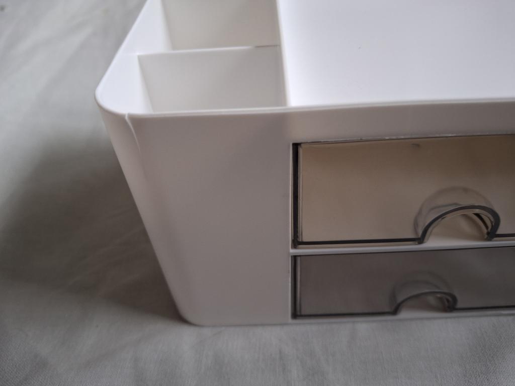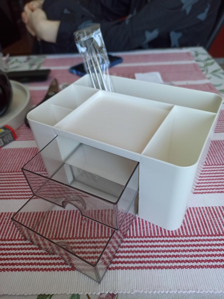 sehr cooler Organizer. für Kosmetik bestellt. Die transparenten Schubladen haben mir sehr gut gefallen. sehr zuvorkommend. Der einzige Nachteil ist, dass die untere Schublade nicht gut schließt.