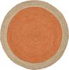 Diese Matte wird aus recyceltem Stoff und Jute hergestellt, von Hand geflochten und dann als Symbol der Unendlichkeit in einem Kreis zusammengenäht.