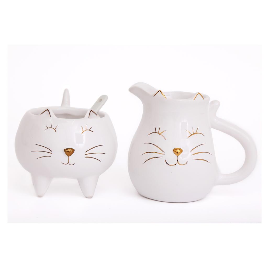Les Trésors De Lily [A0010] - Cremetopf und Zuckerdose aus goldener Elfenbeinkeramik „Cats“ – Höhe 10 cm